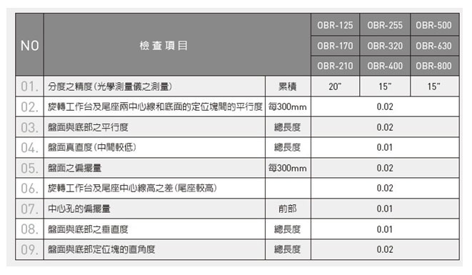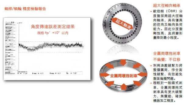 DDR直驅系列OBR系列 (蝸輪蝸杆定位)IBR系列(離合齒定位)TOBRE系列(五軸蝸與輪蝸杆定位)TOBRS系列(4軸半蝸與輪蝸杆定位)MIBR-xxxV/xD系列(立式 帶離合齒定位之油壓等分)MIBR-xxxH/xD系列(臥式 帶離合齒定位之油壓等分)HOBR系列 (純臥式 油壓刹車 蝸輪與蝸杆定位)HIBR系列 (純臥式 油壓刹車 齒式分割定位)POBR系列PIBR系列OBR-xxx-2/3W系列