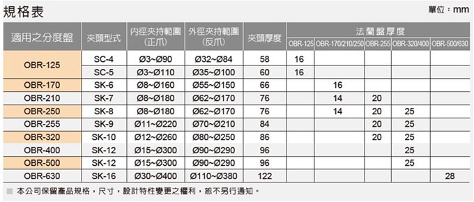 DDR直驅系列OBR系列 (蝸輪蝸杆定位)IBR系列(離合齒定位)TOBRE系列(五軸蝸與輪蝸杆定位)TOBRS系列(4軸半蝸與輪蝸杆定位)MIBR-xxxV/xD系列(立式 帶離合齒定位之油壓等分)MIBR-xxxH/xD系列(臥式 帶離合齒定位之油壓等分)HOBR系列 (純臥式 油壓刹車 蝸輪與蝸杆定位)HIBR系列 (純臥式 油壓刹車 齒式分割定位)POBR系列PIBR系列OBR-xxx-2/3W系列