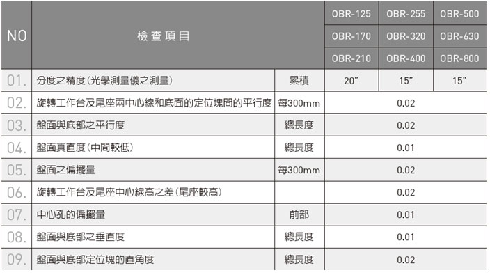 * OBR标准精度按日本JIS精度检验标准。